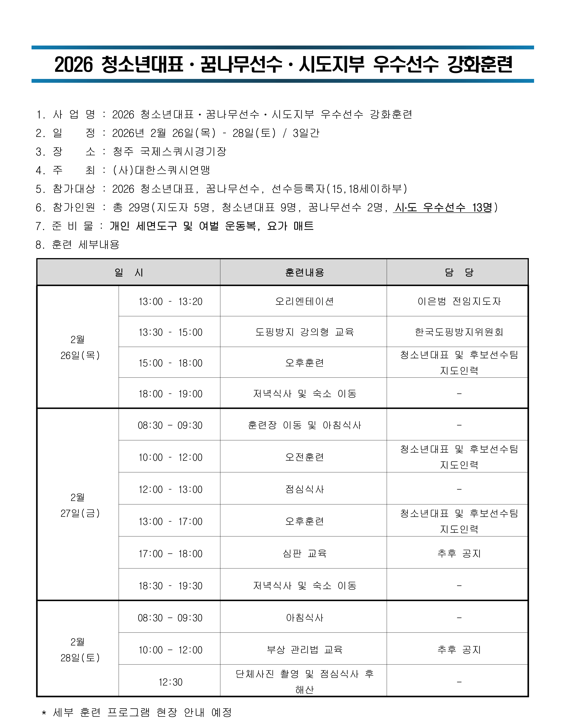 2026 û¼Ò³â´ëÇ¥¤ý²Þ³ª¹«¼±¼ö¤ý½ÃµµÁöºÎ ¿ì¼ö¼±¼ö °ÈÈÆ·Ã ¸í´Ü ¹× ¾È³»»çÇ× °øÁö(¼öÁ¤)