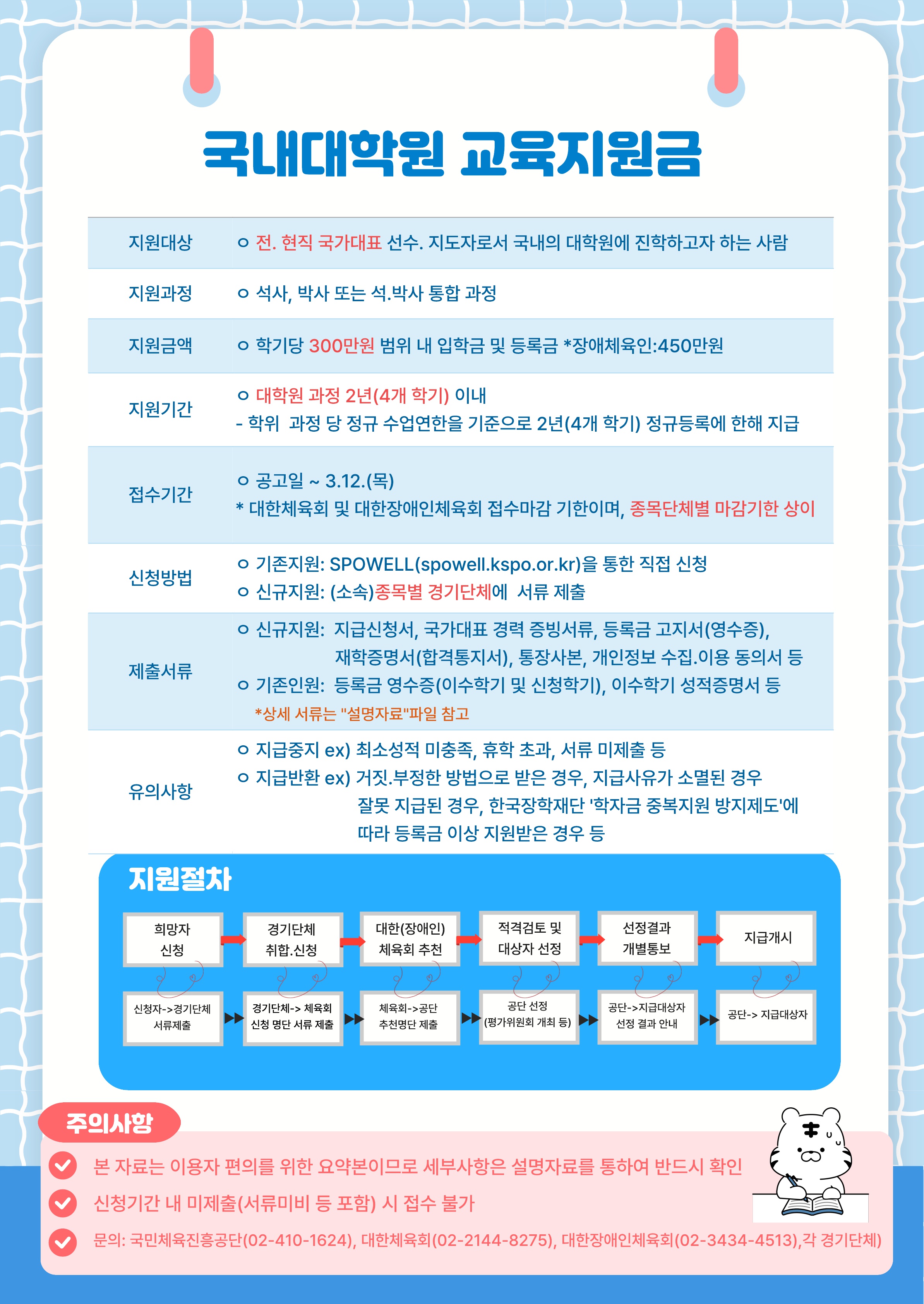 ¼¿ï¿Ã¸²Çȱâ³ä±¹¹ÎüÀ°ÁøÈï°ø´Ü¿¡¼ ¡®2026³âµµ »ó¹Ý±â ±¹³»´ëÇпø ±³À°Áö¿ø±Ý¡¯»ç¾÷À» ÁøÇàÇÏ¿À´Ï ±¹³» ´ëÇпø¿¡ ÁøÇÐÀ» Èñ¸ÁÇÏ´Â ±¹°¡´ëÇ¥ ¼±¼ö ¹× ÁöµµÀÚ(Àü¡¤ÇöÁ÷)µé²²¼´Â ¸¹Àº °ü½É ¹Ù¶ø´Ï´Ù. ¡à »ç¾÷³»¿ë °¡. ÀÚ°Ý¿ä°Ç: ±¹³» ´ëÇпø¿¡ ÁøÇÐÀ» Èñ¸ÁÇÏ´Â ±¹°¡´ëÇ¥ ¼±¼ö ¹× ÁöµµÀÚ(Àü¡¤ÇöÁ÷) 1) ½Å±Ô´ë»óÀÚ: ´ëÇÑüÀ°È¸ Ãßõ ¼øÀ§, ±¹¹ÎüÀ°ÁøÈï°ø´Ü Æò°¡À§¿øÈ¸ Á¡¼ö µî Á¾ÇÕÆò°¡Á¡¼ö °íµæÁ¡ÀÚ ¼±Á¤ 2) ±âÁ¸´ë»óÀÚ: Áö±Þ¿ä°Ç ÃæÁ· ½Ã °è¼Ó Áö¿ø ³ª. Áö¿ø±Ý¾×: Çбâ´ç 300¸¸¿ø ¹üÀ§ ³» º»Àκδã ÀÔÇС¤µî·Ï±Ý ½Çºñ ´Ù. Áö¿ø±â°£: ´ëÇпø °úÁ¤ Á¤±Ô ¼ö¾÷¿¬ÇÑ 4°³ Çбâ À̳» ¡Ø ´Ü, ÇÐÄ¢¿¡¼ ÀÎÁ¤ÇÏ´Â Á¤±Ô ¼ö¾÷¿¬ÇÑÀÌ 5°³ Çбâ ÀÌ»óÀÎ °æ¿ì, Áö¿ø±â°£ ¿¬Àå °¡´É ¶ó. Á¦Ãâ±âÇÑ: 2026. 3. 3.(È) 12:00 ±îÁö ¡Ø ±âÇÑ ¾ö¼ö ¸¶. Á¦Ãâ¹æ¹ý: ¿¬¸Í À̸ÞÀÏÁ¦Ãâ(koreasquash@sports.or.kr) * ¸ÞÀÏÁ¦¸ñ: 2026³âµµ »ó¹Ý±â ±¹³»´ëÇпø ±³À°Áö¿ø±Ý ½Åû ¹Ù. Áö±Þ½Ã±â ¹× ¹æ¹ý: 3¿ù 31ÀÏ °³Àκ° °èÁ ÀÔ±Ý ¿¹Á¤